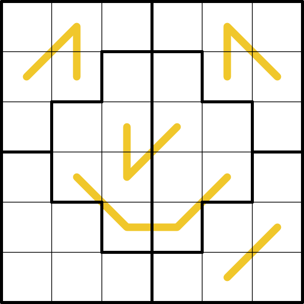 Fibonacci Lines: digits on a yellow line form a Fibonacci sequence. The line starts with a small digit followed by a larger, consecutive digit. From there, every next digit will be the sum of the previous two digits.