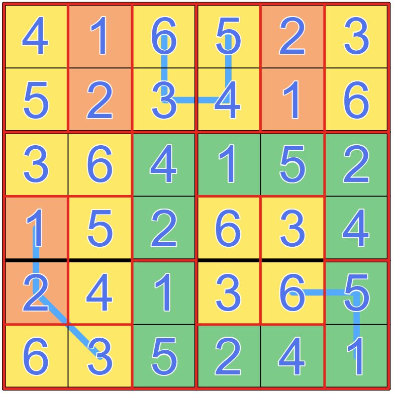 - Digits joined by a black dot must be in a 2:1 ratio.