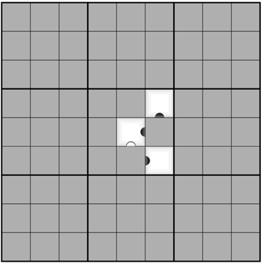 All dots are given. In the case of a 1,2 pair, a white or black dot may be given.