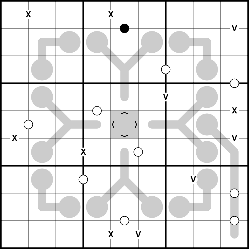 Numbers, in a Maximum grey cell with greater than symbols, are greater than all 4 orthogonally adjacent cells.