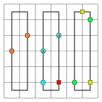 Split Krokpea: The value of a dot is the positive difference between the two digits it connects. The sum of digits along a line segment is given by the two-digit number given by the values of the dots at its ends, taken in one order or another. The two dots marked 'a' have the same value.