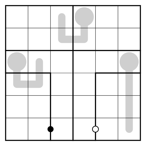 Irregular sudoku rules apply. Place the digits 1 - 6 once in every row, column and bold outlined box.