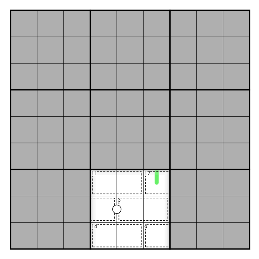 • Digits along a blue line create a sumline where the sum of digits on a line within a particular 3x3 box must be the same for all the boxes the line passes through.