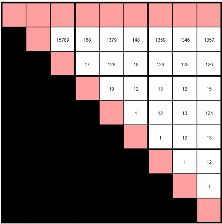 Weird Modular Triplets: For every set of three adjecent digits along a pink line, two of the digits are congruent modulo the third digit.