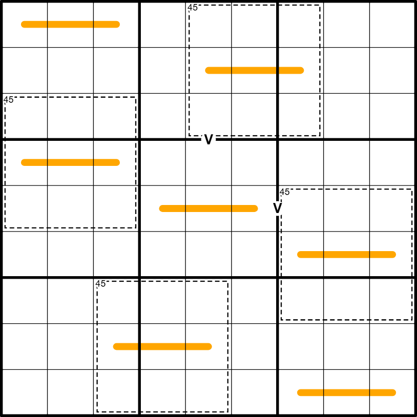 Each killer cage is a magic square. A magic square is a 3x3 square with the digits 1-9 where all rows, columns and diagonals have the same sum.