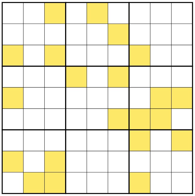 How does the rule work in regards to box eight, since the digit 8 couldn’t be placed due to the box containing no gold squares? I’m a little confused on the negative constraint