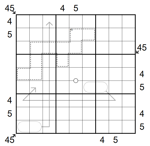 Little killers [ Numbers with an arrow outside the cage indicate the sum of the digits along that diagonal]