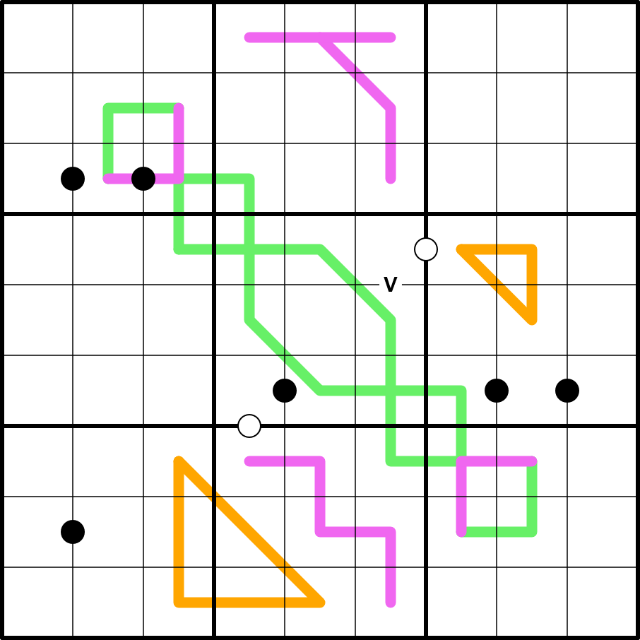 - Dutch Whispers - neighboring digits along an orange Dutch Whisper line must differ in value by at least 4.