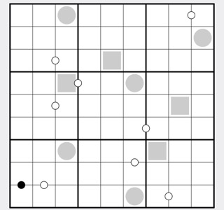 Cells connected by a black kropki dot are in a 2:1 ratio.