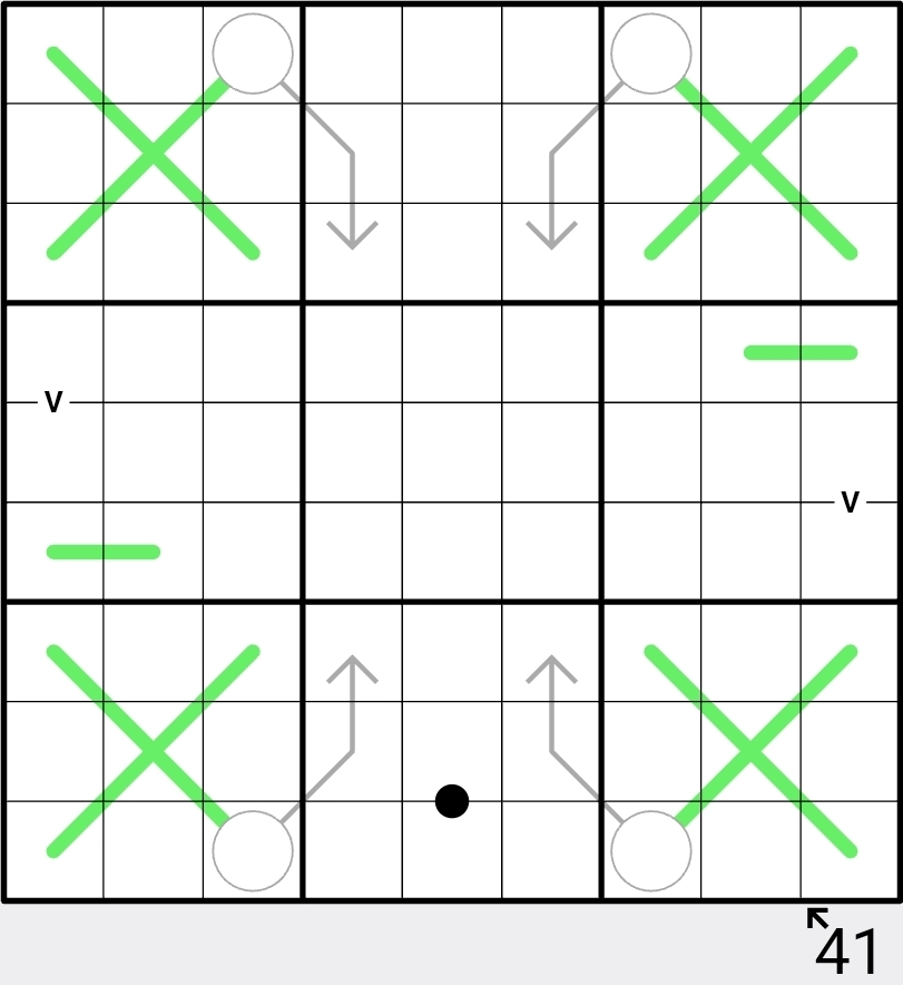 6. A clue outside the grid shows the sum of the digits along the diagonal that the outside arrow is pointing too. Digits can repeat along the diagonal, if allowed by other rules.
