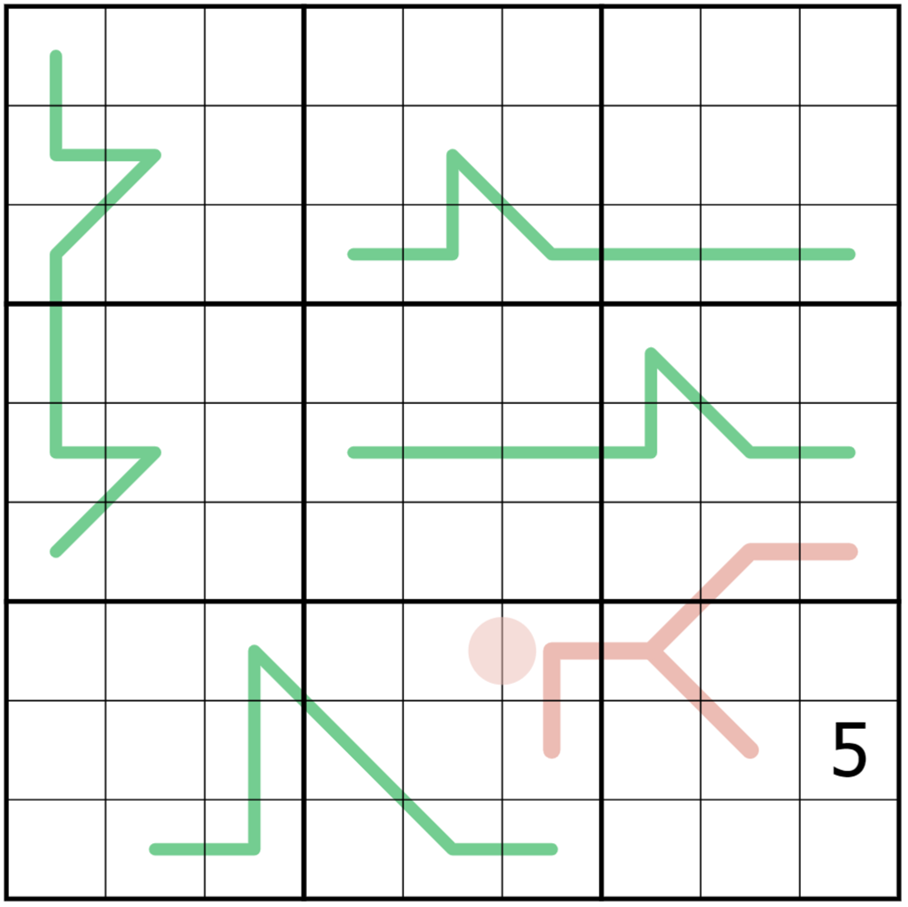 GERMAN WHISPER: Adjacent digits on lines must differ by 5 or more.