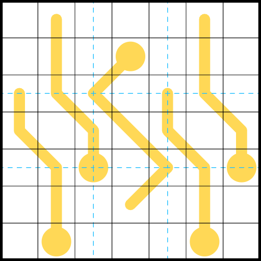 Place digits from 1-9 in every cell, so that no digit repeats in a row, column, or 3x3 region. The dashed lines indicate the boundaries of regions, and cells on the lines are simultaneously part of the regions on both sides of the line.