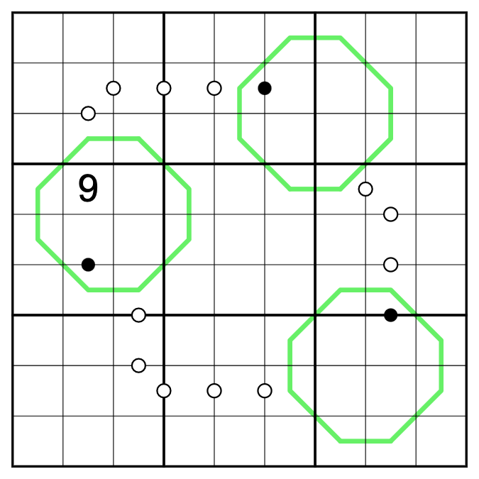 >> Yes, we debated about including the given 9 but testing indicated that, even though the 9 isn't necessary for uniqueness or logical solvability, it made the solve path more enjoyable at the difficulty level we were shooting for in this case. Glad you enjoyed it!