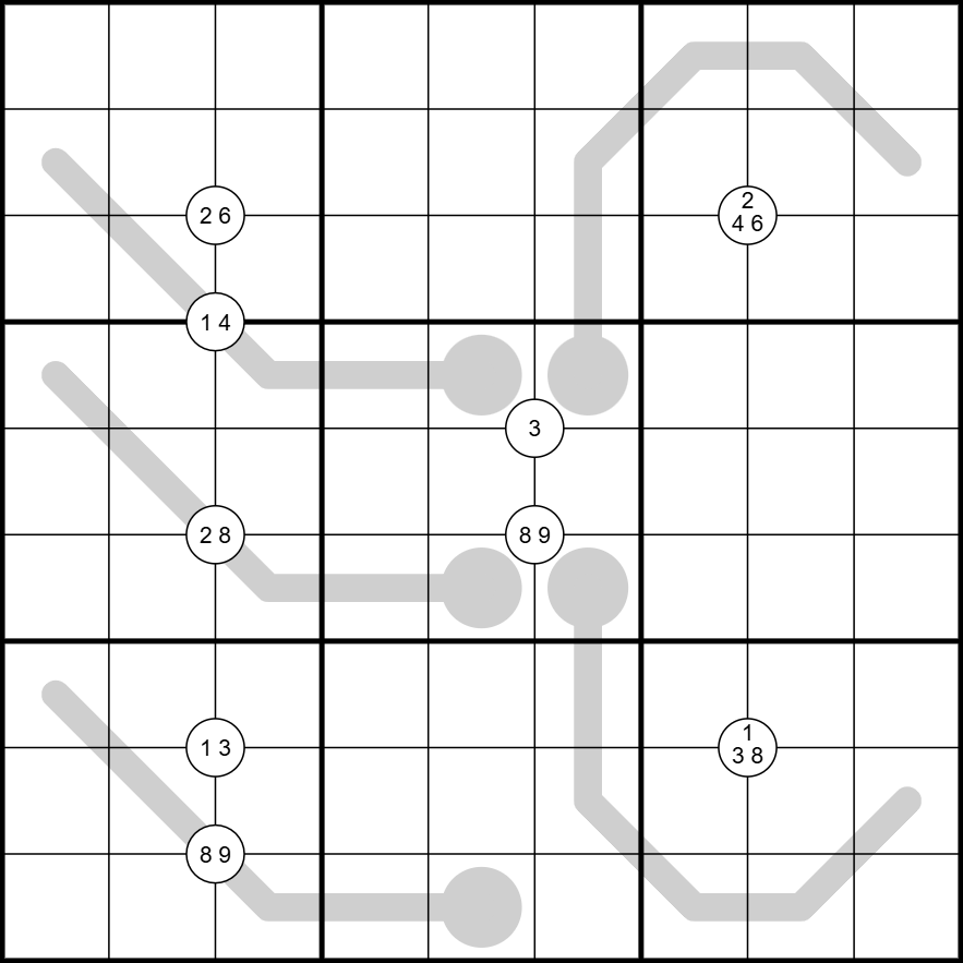 Quadruples: Digits in a Quadruple circle must be placed at least once in the four cells touching that circle.