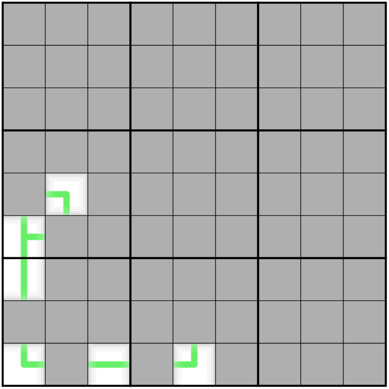 Renban: Values on a thick purple line form a set of consecutive numbers with no repeats.