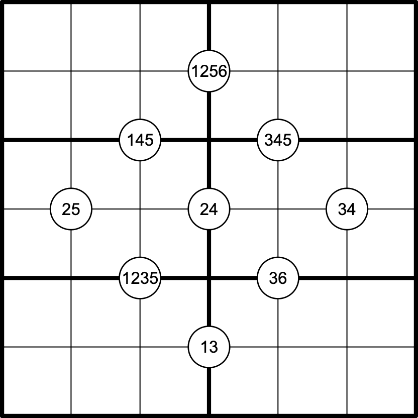 Digits in circles must appear in at least one of the four cells surrounding that circle.