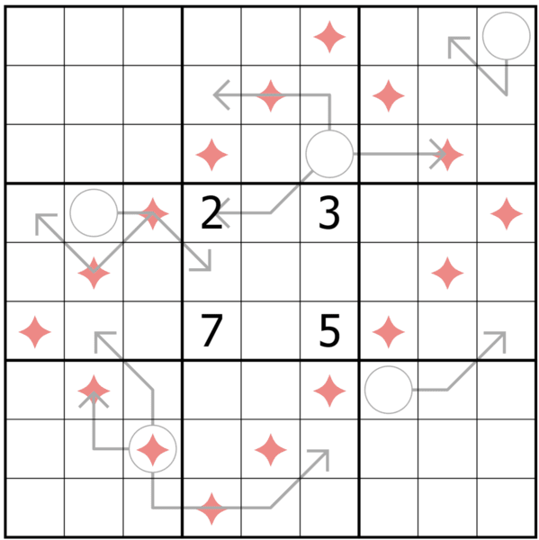 3. Numbers along an arrow must sum to number shown in the cirlced cell.