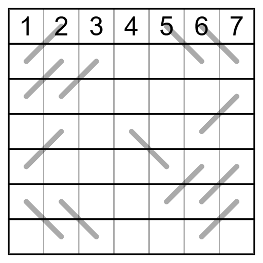 Am I missing something here? I don't see any 'bold outlined regions'. Is it therefore just 1-7 in each row and column?