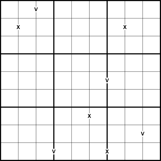 XV: Digits separated by an X must sum to 10. Digits separated by a V must sum to 5. Not all possible Xs and Vs are necessarily given.