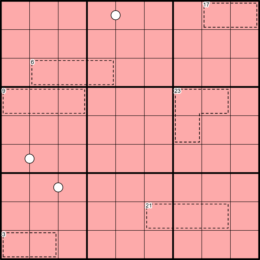Kropki dots: Digits separated by white dots are consecutive. Not all dots are given.