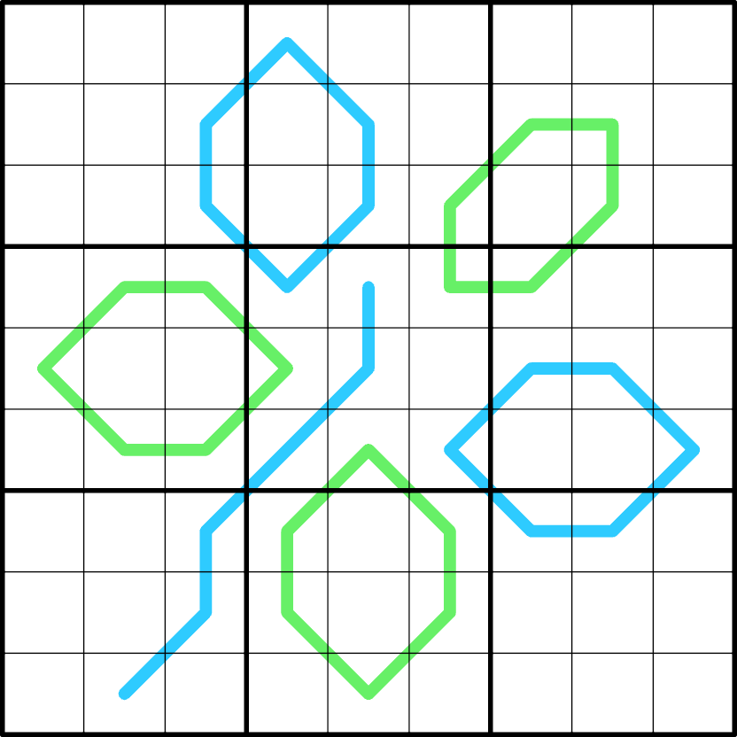 Additionally, digits may not repeat on a line (blue or green).