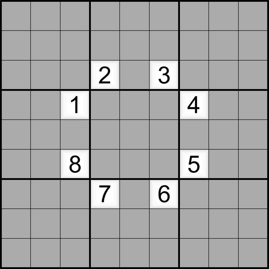Knight's Shift at 9Normal Sudoku Rules Apply. Each row, column, and 3x3 box contains the digits 1-9 exactly once each.