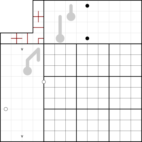 • A value outside the grid indicates how many times the corresponding line shape (i.e. an empty cell, cross, straight line, or turn) appears in the corresponding row or column, irrespective of the line shape's rotation.