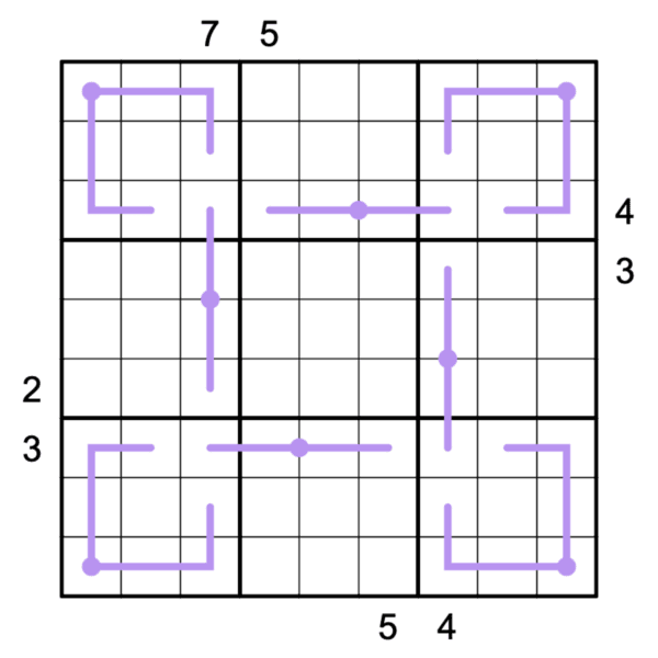 3. Digits outside the grid are skyscraper clues that indicate the number of digits in that row/column that you can "see" and are blocking the view of smaller digits along that line of sight (Skyscrapers)/p>