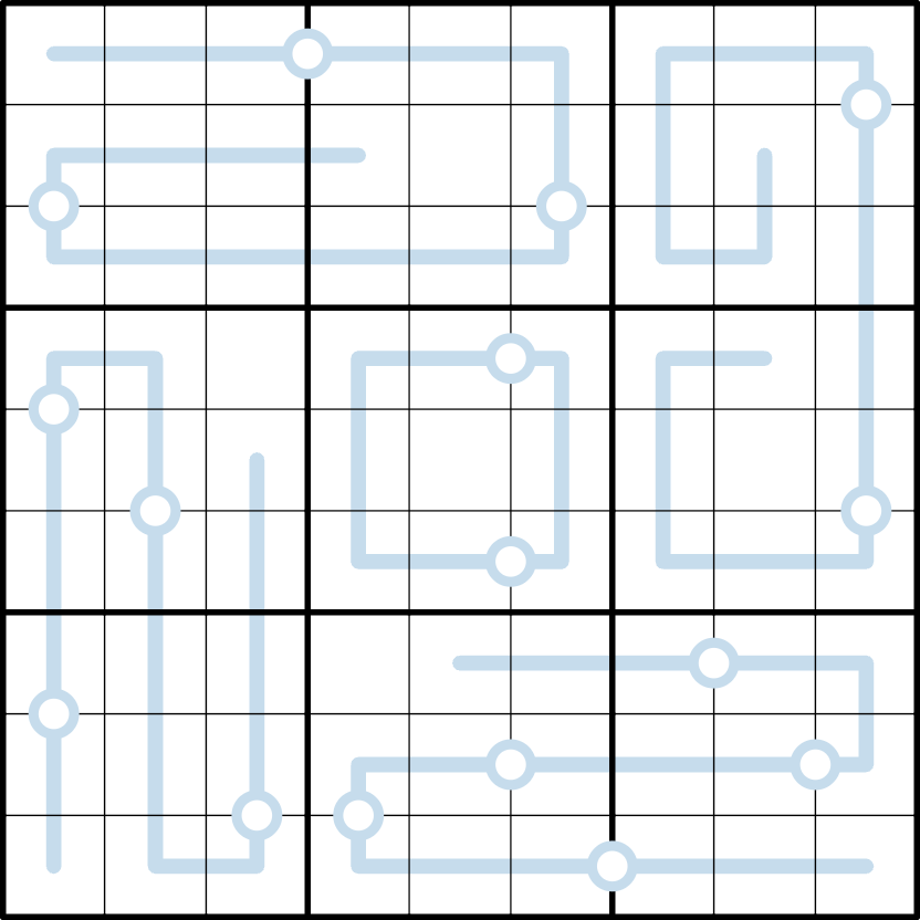 Dots divide lines into segments with equal sums. Digits may repeat on lines but not within a segment.