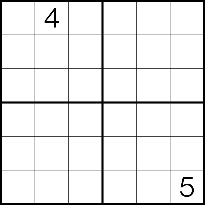 Normal Quattroquadri rules apply. Place the digits 1 through 9 in each empty cell. Digits must not repeat within the same row, column, or box.
