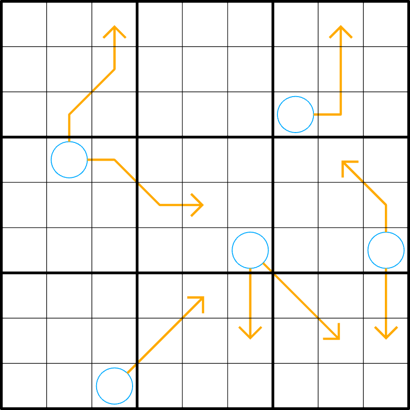 The sum of the digits along an arrow is equal to the digit in the connected circle.