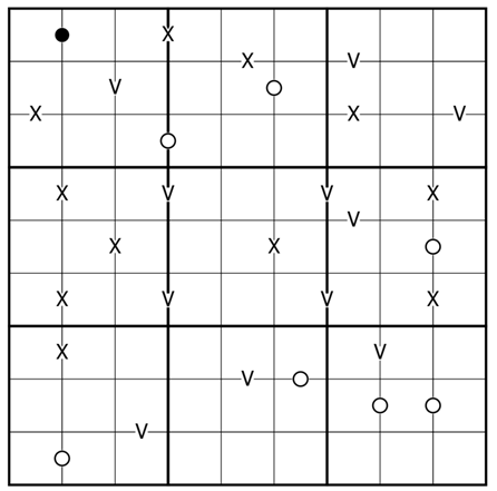 Extended Sudoku rules apply, place the digits 0-9 in each row, column, and box, however there will be one digit in each that does not fit. This digit can vary between rows, columns, and boxes and needs to be determined by the solver.