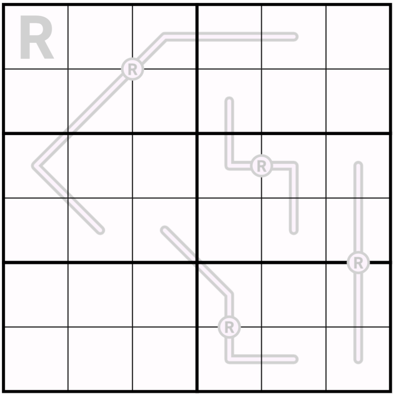 Ambiguity: Assign each line a different line type from Entropic, Region Sum and Renban. Lines are their assigned type (and zipper lines).