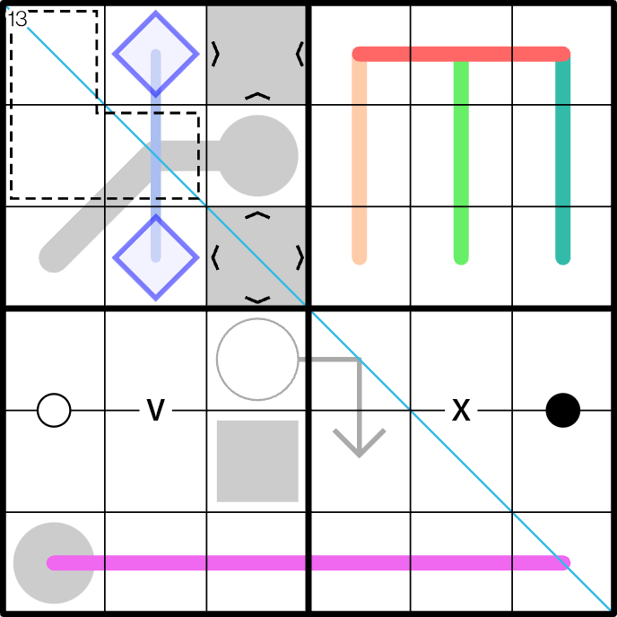 This Puzzle has 18 different types of clues, each with its most common 'standard' rules.