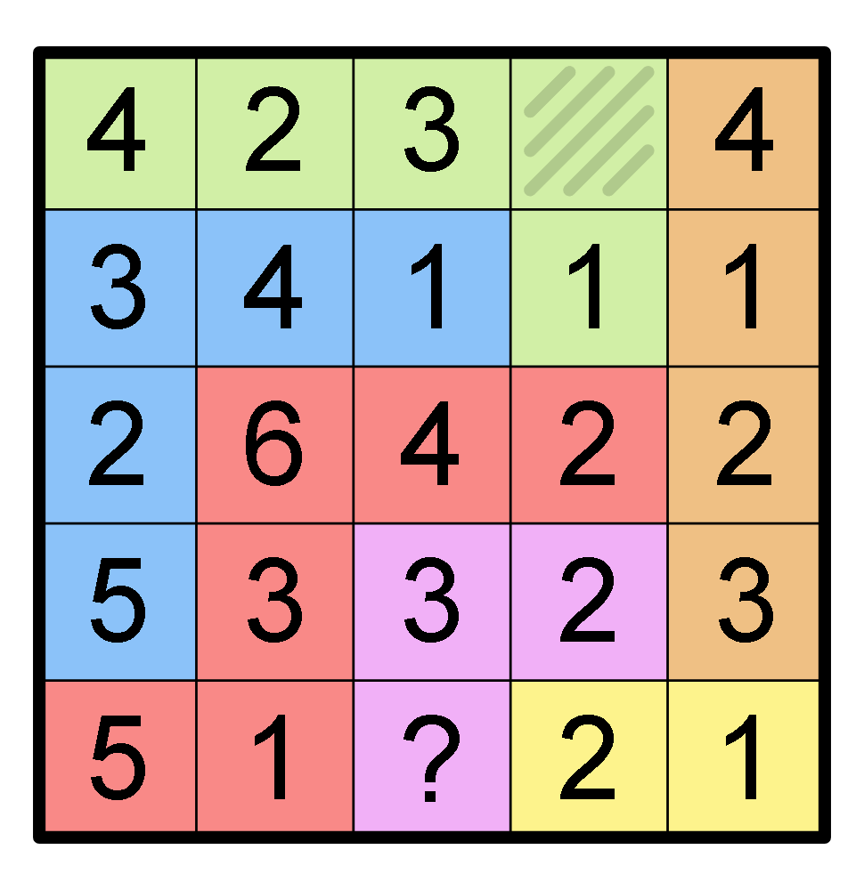 Solution code: In each puzzle, the rightmost cell of the lowest row of the region touching the upper left corner of the grid.