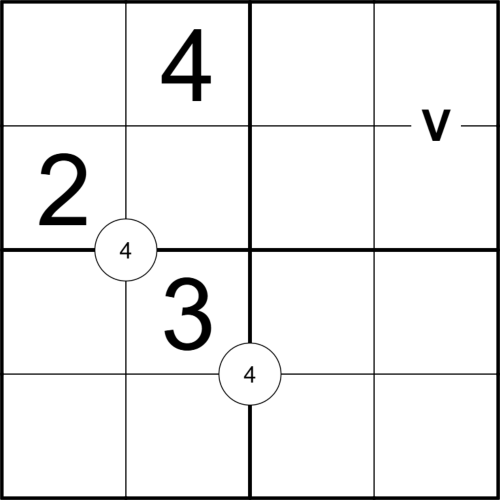 Digits separated by a V sum to 5. Not all V clues are necessarily given.
