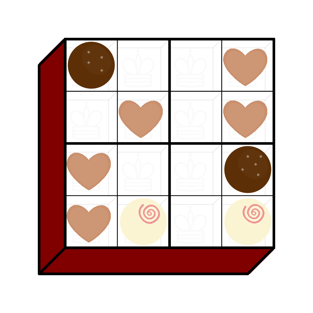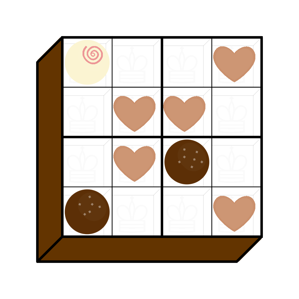 - Signature milk chocolate hearts in a puzzle sum to an even number.