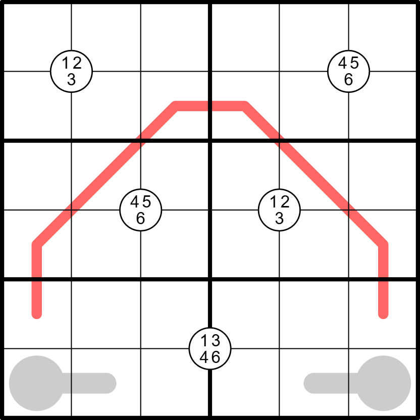 Parity line: Adjacent digits on the the red line must alternate between odd and even digits.