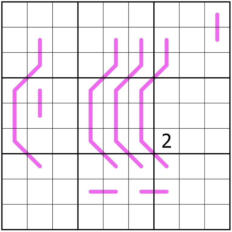 Each purple line contains a set of non-repeating consecutive digits, which can be in any order.