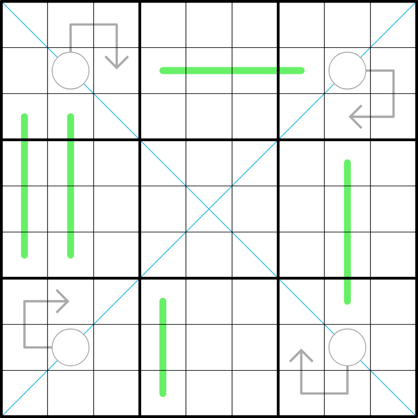 Diagonal: Digits cannot repeat in marked diagonals.