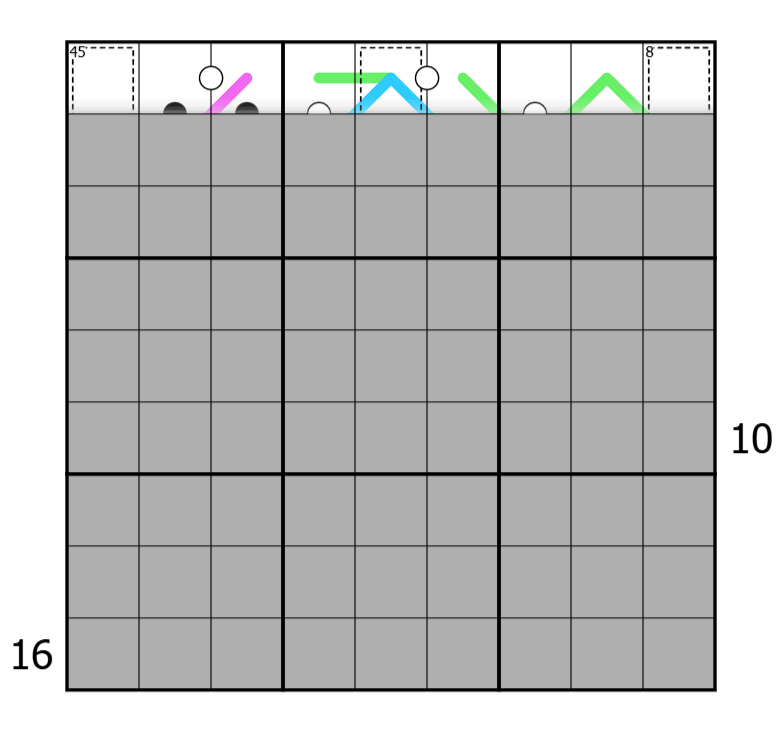 - Digits on a pink line form a set of consecutive non repeated digits in any order. For example 37465 is a valid length 5 line