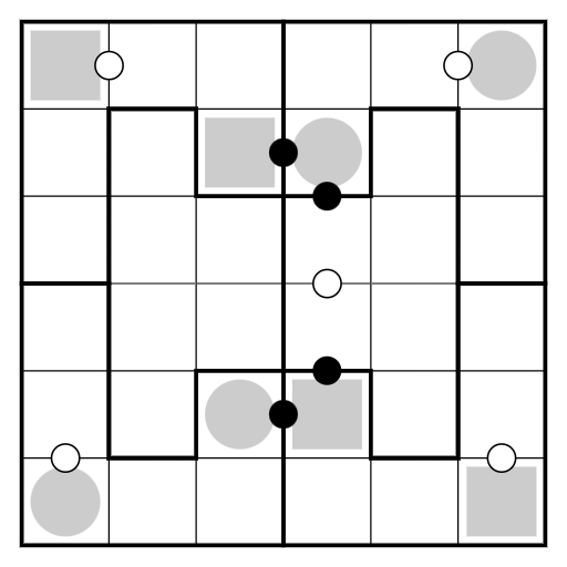Digits on a grey square must be even. Digits on a grey circle must be odd.