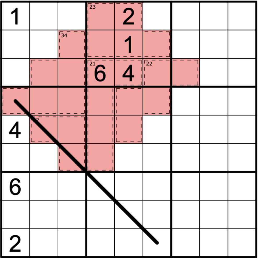 Red Killer Cages - digits must add up to the total in the top left hand corner. Digits may not repeat in a cage