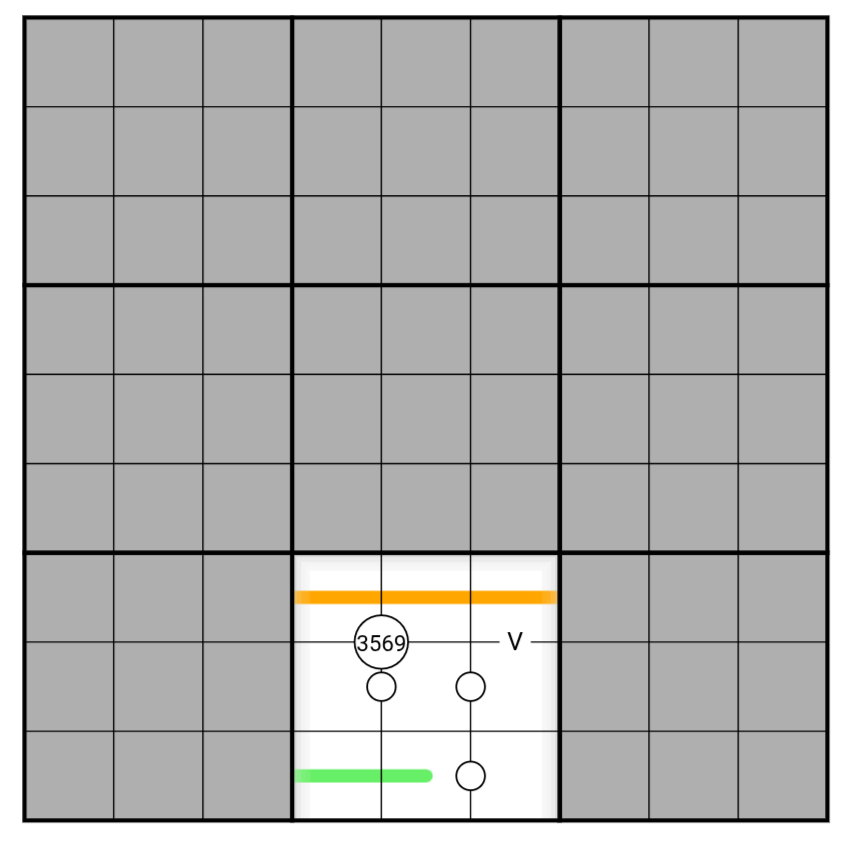 • Digits along an orange Dutch line must have a difference of at least 4.