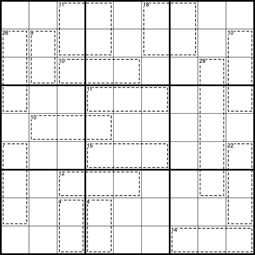 Within a cage, digits must not repeat and their values sum to the small number in the top left corner.