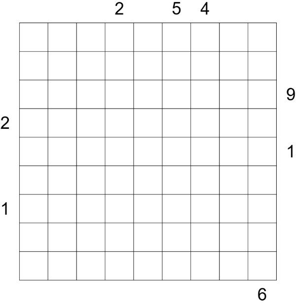 Skyscraper: Each cell represents a skyscraper whose height is given by the value of the cell. A skyscraper blocks the view on all skyscrapers of the same or lower height standing behind it. Clues outside the grid give the number of skyscrapers seen from that direction in the corresponding row or column.