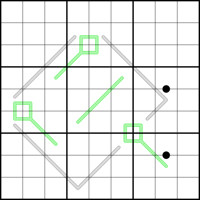 - Black Kropki: Digits separated by a black dot are in a 1:2 ratio.