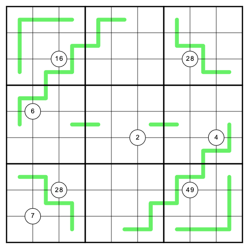Whisper-5 Lines: (German Whispers) Adjacent digits along a Whisper-5 line must differ by at least five.