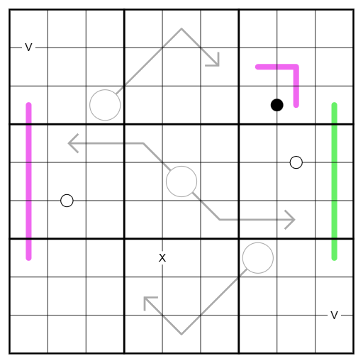 - Kropki Dots: A black dot between cells indicates cell values with a 2:1 ratio. A white dot between cells indicates cells with consecutive values. Not all dots are given.