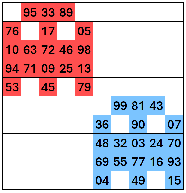 -2. In each row and each column, no two numbers may share the same tens digit.